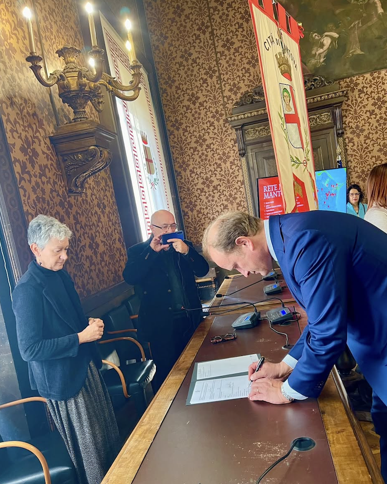 This morning, at the Council Room of the Municipality of Mantua, the Mayor Mattia Palazzi presented the important Protocol, which was signed by the Tazio Nuvolari Museum, represented by the President of Aci Mantova Alberto Marenghi, who signed the agreement, and by the Director Giuseppe Pottocar.