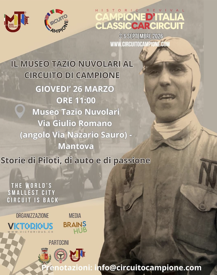 The talk will also serve as the stage to present the cultural highlights of the 2026 Campione Circuit, the book published in December titled “History of the Campione d’Italia Circuit”, and, in preview, the Tazio Nuvolari Museum Trophy, which will once again be awarded in the next edition as it was in 2025.